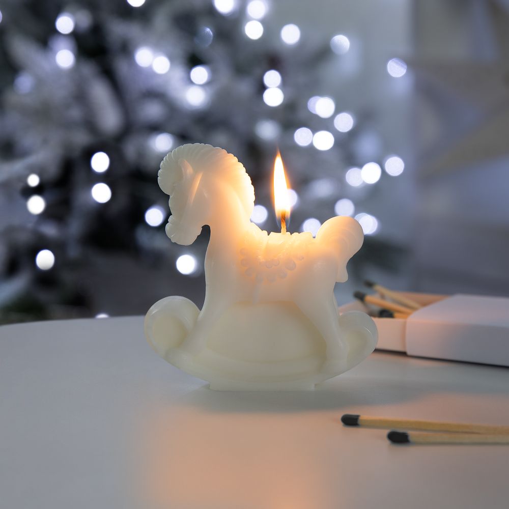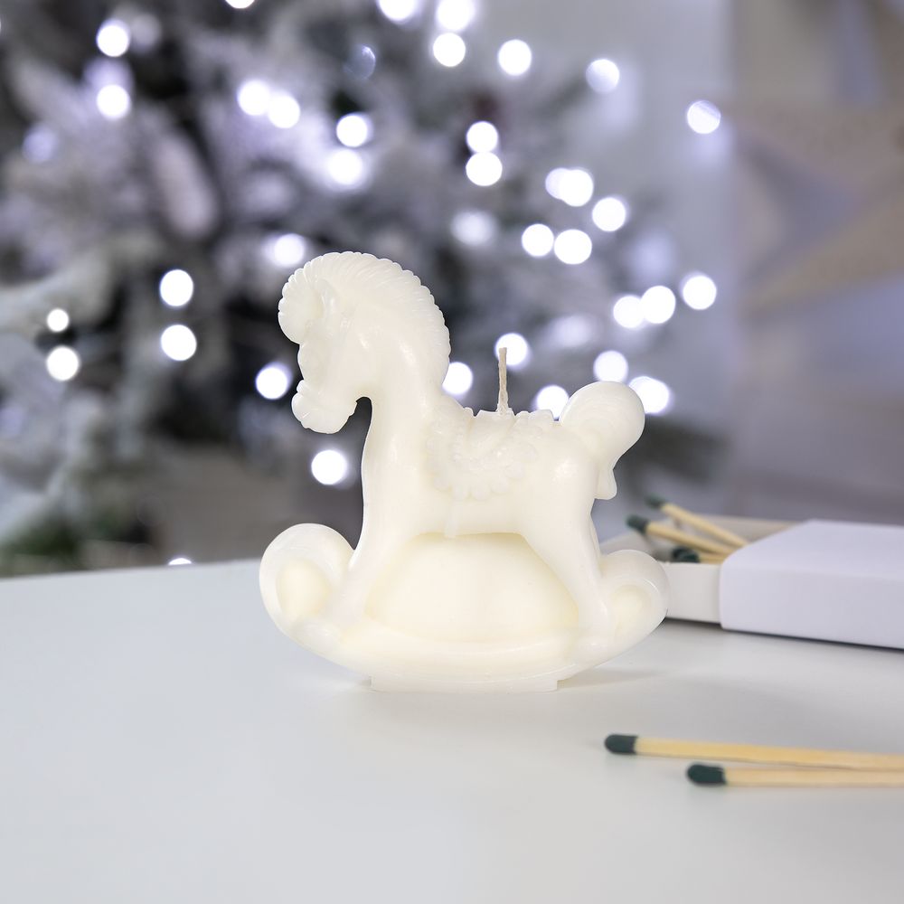 Свеча фигурная «Лошадка-качалка», белая купить оптом и в розницу с нанесением логотипа в Казани