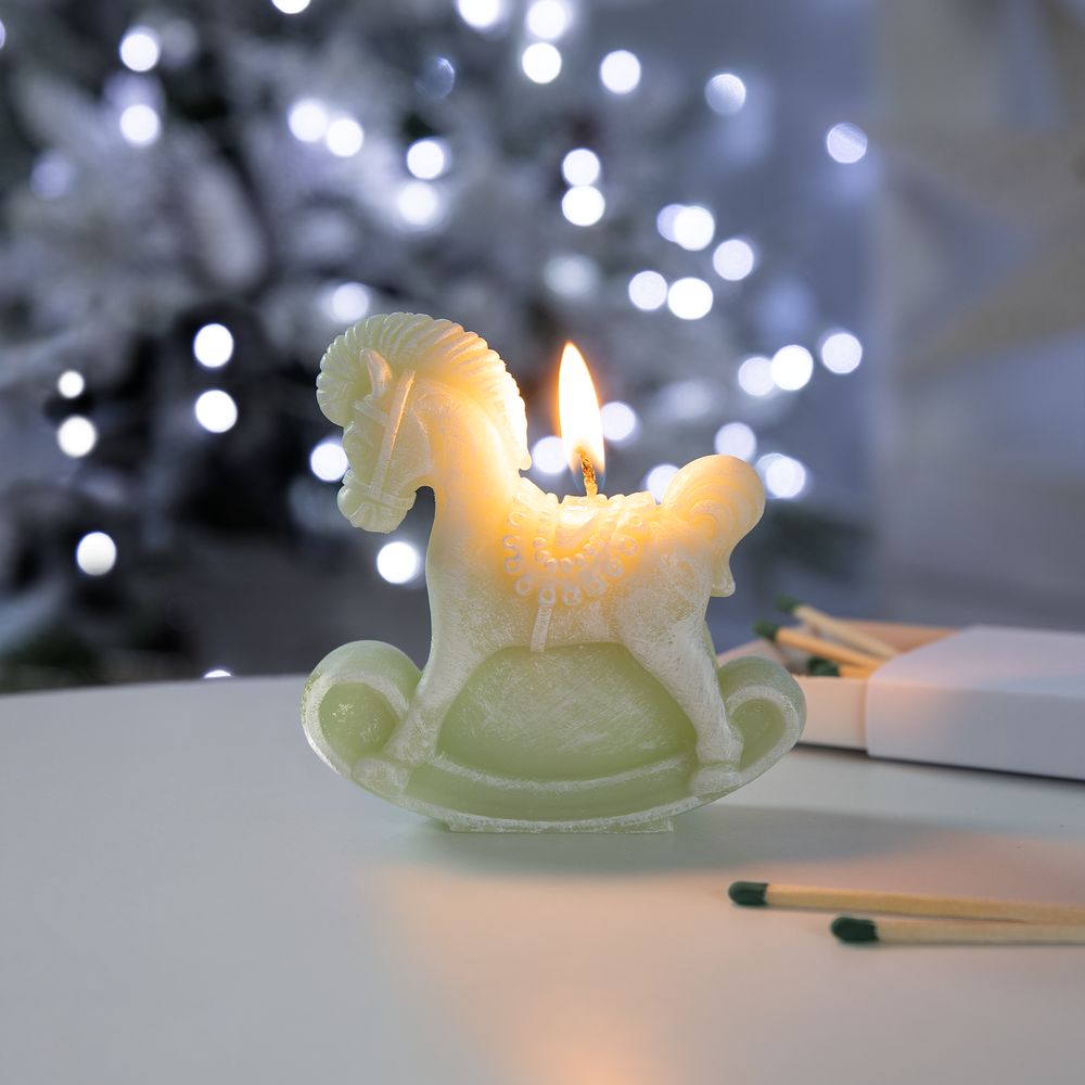 Свеча фигурная «Лошадка-качалка», светло-зеленая
