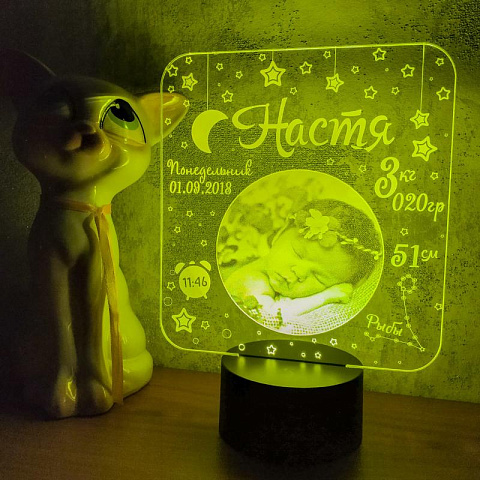 • Светильник персонализированный, а значит на него будут нанесены данные Вашего ребенка