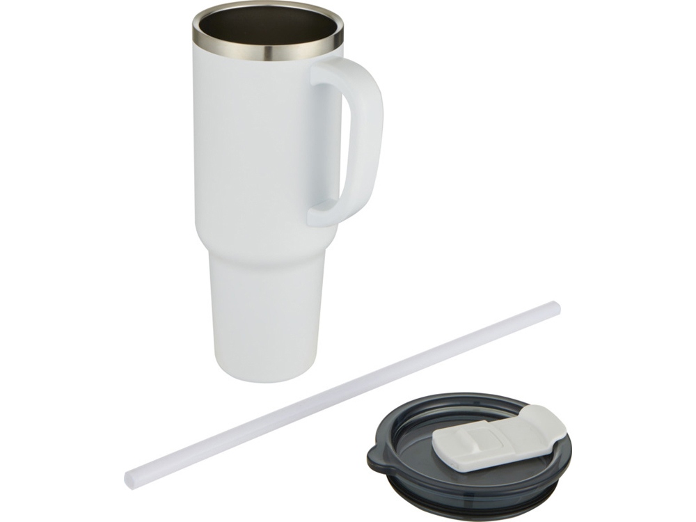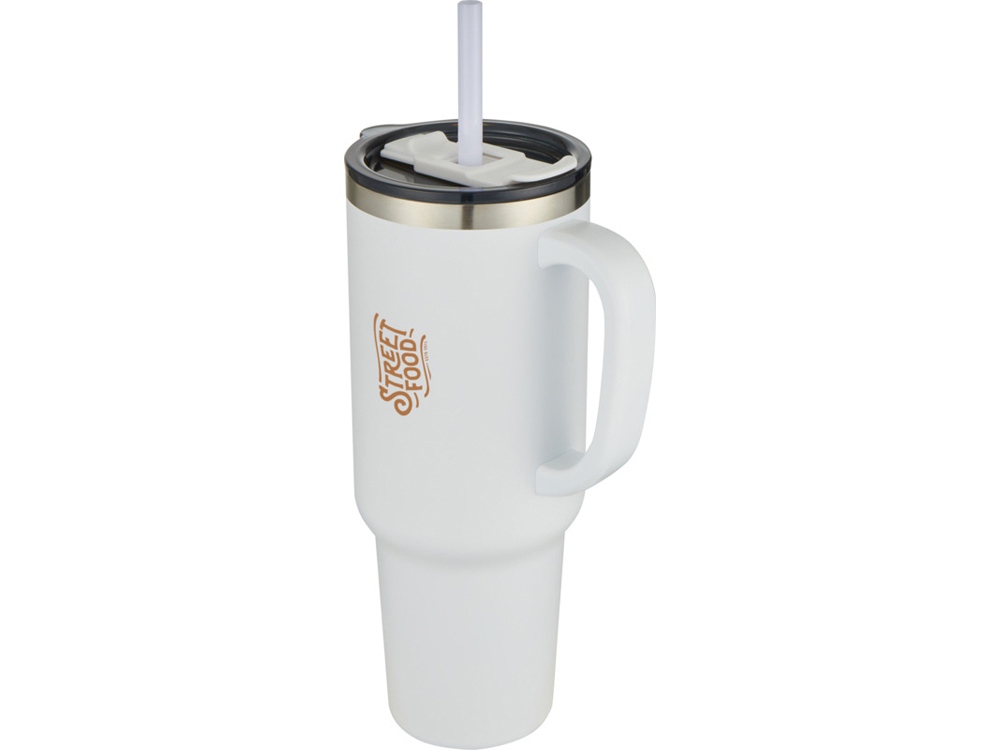 Кружка с двойными стенками из меди, сертифицированной RCS, и вакуумной изоляцией, изготовлена из нержавеющей стали, 91% которой подверглось вторичной переработке, сохраняет напитки холодными в течение как минимум 24 часов. Имеет соломинку Tritan и функцию слайдера крышки для предотвращения проливания. Прижимная поворотная крышка из 100% переработанного пластика надежно удерживает соломинку на месте и может легко поворачиваться, открывая отверстие для напитка. Прочное внешнее порошковое покрытие. Объем: 1200 мл. Только ручная мойка. Recycled stainless steel.