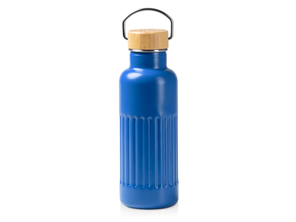 Термобутылка Нобук из переработанной нержавеющей стали, с бамбуковой крышкой, королевский синий купить оптом и в розницу с нанесением логотипа в Казани