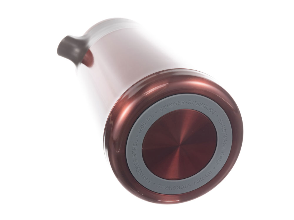 ТЕРМОКОФЕЙНИК STINGER 1,6 л НАЗНАЧЕНИЕ Термокофейник STINGER предназначен для сохранения температуры помещаемых в него жидкостей (воды, напитков) как в горячем, так и в холодном состоянии. ХАРАКТЕРИСТИКИ Объём: 1,6 л Вес: 0,928 кг Время сохранения тепла: 24 часа Время сохранения холода: 24 часа Метод изоляции: вакуум Размеры • Высота – 25,9 см • Диаметр горлышка – 9,5 см • Диаметр дна – 13,6 см • Ширина (с учетом ручки и носика) – 18 см Тип крышки: винтовая, узкий носик Тип горлышка: широкое Тип подачи наполнения: рычаг подачи / блокировки воды Цвет: красный Материалы • Корпус: нержавеющая сталь, класс AISI 304 18/8 Stainless Steel • Колба: нержавеющая сталь, класс AISI 304 18/8 Stainless Steel • Крышка: нержавеющая сталь, класс AISI 304 18/8 Stainless Steel, пищевой пластик, не содержит бисфенол А (BPA free) • Прокладки-уплотнители: пищевой силикон ОСОБЕННОСТИ • Двойные стенки с вакуумной изоляцией отлично сохраняют температуру долгое время, гарантируют безопасность прикосновения к очень горячим и холодным напиткам. • Внешний и внутренний корпус из прочной пищевой нержавеющей стали AISI 304 18/8. • Пластиковые детали не содержат Бисфенол А (BPA free). • Герметичная винтовая крышка защищает от случайного открывания и проливания жидкости. • Простота в использовании: эргономичная ручка и удобный рычаг позволяют наливать напиток в одно касание и одной рукой – достаточно нажать на кнопку. • Носик плавной формы с широким изливом позволит быстро наполнить чашки или бокалы. • Широкая горловина для легкого наполнения и очистки. • Силиконовая накладка на дне предотвращает случайное скольжение и опрокидывание. • Идеально подходит для горячего кофе или чая, сохраняет вкус и аромат любимых напитков.