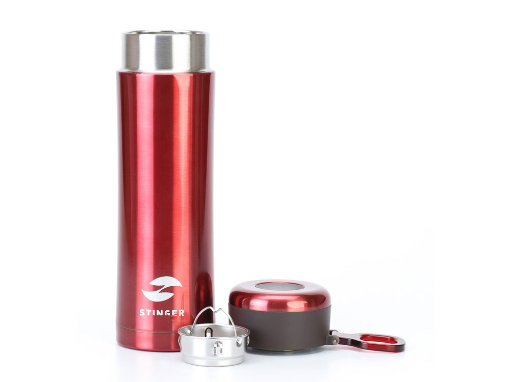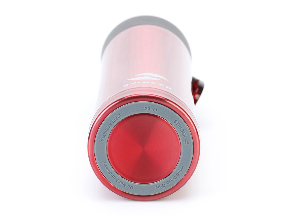 ТЕРМОКРУЖКА STINGER 0,42 Л СВОЙСТВА: Тип термоса: для горячих и холодных напитков Материал корпуса: двухслойная нержавеющая пищевая сталь 18/8 Тип крышки: закручивающаяся Материал крышки: пластиковая без бисфенола А (BPA free) Объём термоса: 0,42 л Размер термоса: 7,5 х 6,9 х 22,2 см Вес термоса: 346 г Цвет: красный металлик ХАРАКТЕРИСТИКИ: Сохраняет температуру: Горячий напиток: через 6 часов температура наполняемой жидкости 71℃ Холодный напиток: через 6 часов температура наполняемой жидкости 7,5 ℃ ОСОБЕННОСТИ: Ситечко для заварки чая или кофе Кольцо для удобства переноски Подходит под любые автомобильные подстаканники