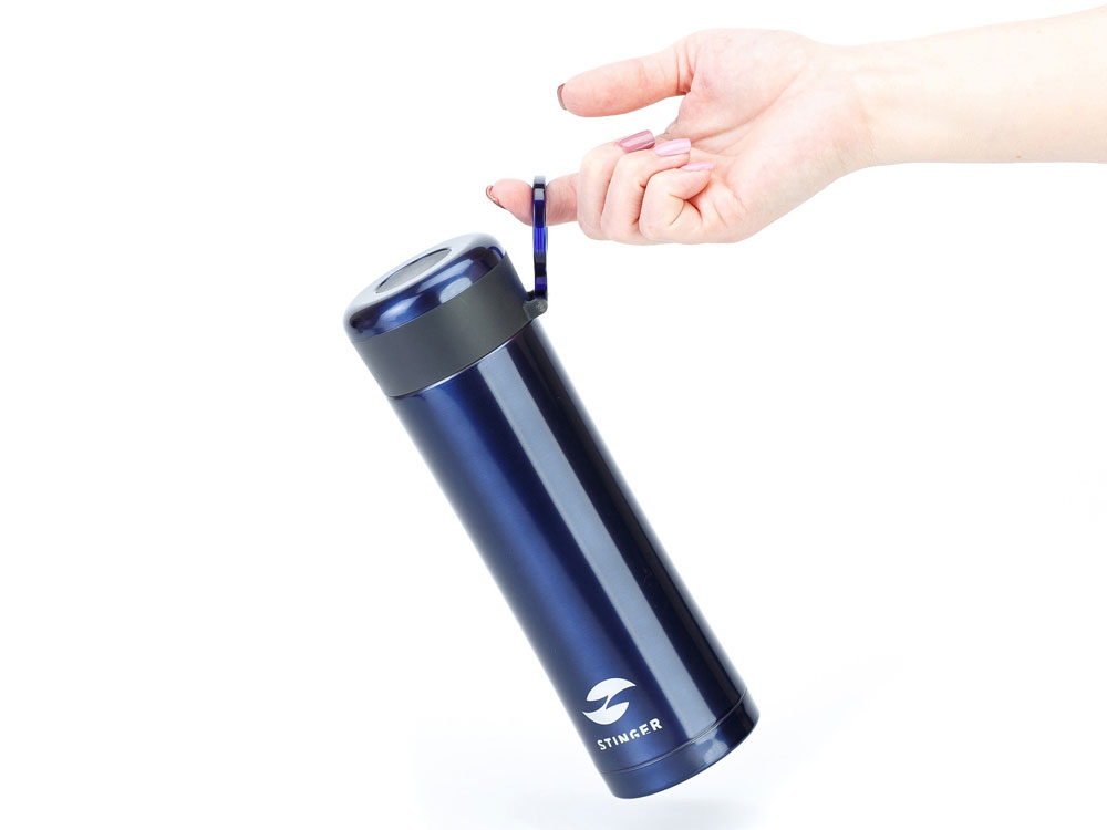 Термокружка Stinger, 0,42 л, сталь/пластик, синий глянцевый, 7,5 х 6,9 х 22,2 см