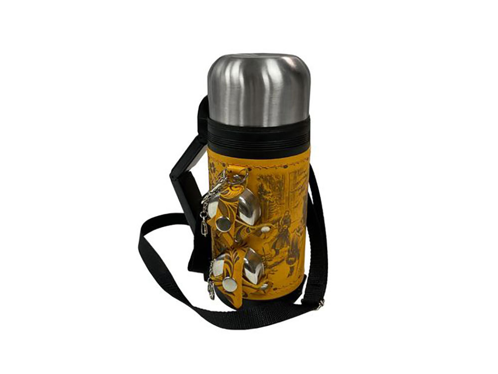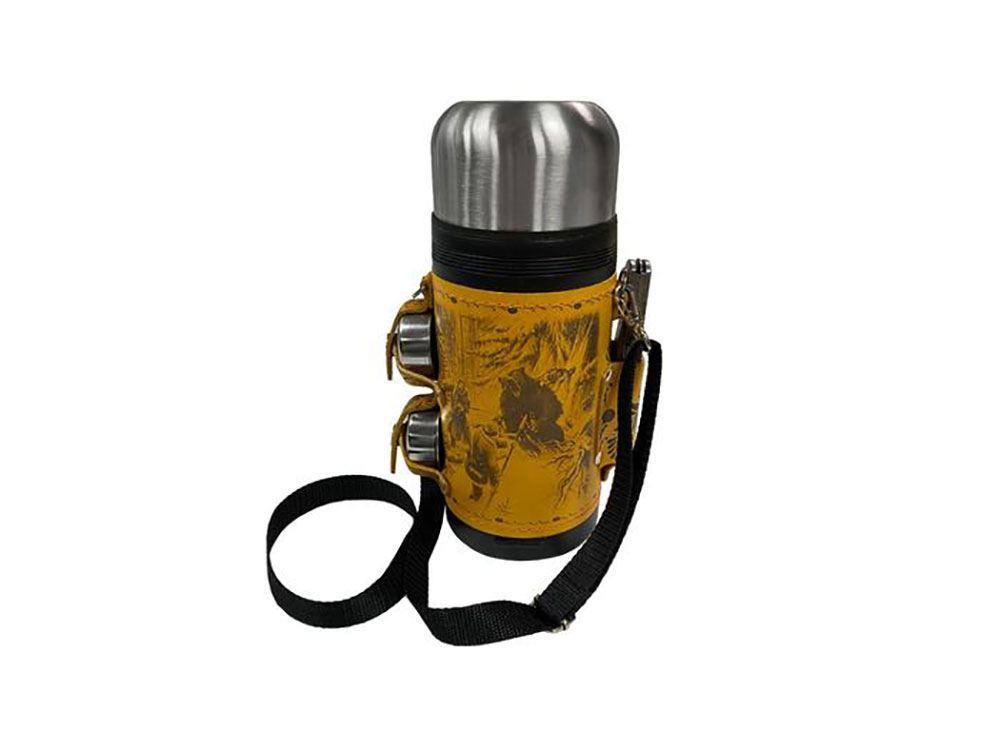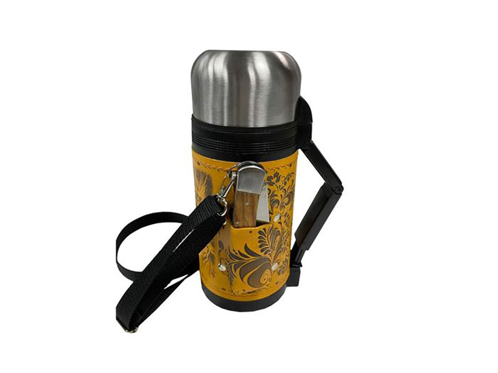 Отличный подарочный термос для дорогого вам человека! Включает в себя термос на 1,2 л в чехле из натуральной кожи с художественным выжиганием, 2 складных стакана и многофункциональный нож. Каждый предмет надёжно закреплён на своём месте кожаными ремешками. Невозможно что-то забыть - пустое место сразу бросится в глаза. В комплекте: - Термос 1,2л (нерж.сталь) с металлической колбой в чехле из натуральной кожи с художественным выжиганием - 1 шт. - Стакан складной 60 мл (нерж.сталь) - 2 шт. - Нож многофункциональный (нерж.сталь) - 1 шт.