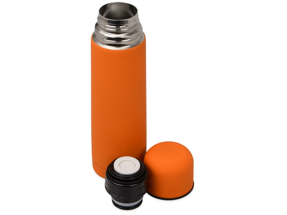 Универсальный термос с мягким прорезиненным покрытием софт-тач. Удобно и приятно держать в руке. Благодаря вакуумной изоляции и двойным стенкам сохраняет напитки горячими 24 часа. Герметичный клапан открывается и закрывается по легкому нажатию. Термос поставляется в дорожном чехле из искусственной кожи.