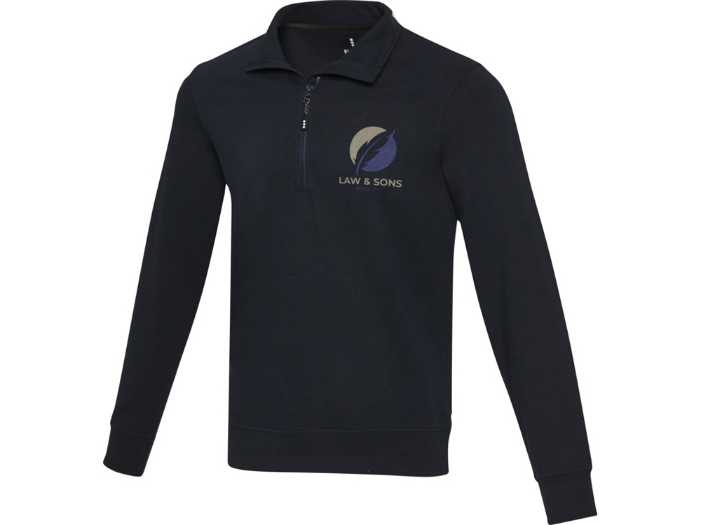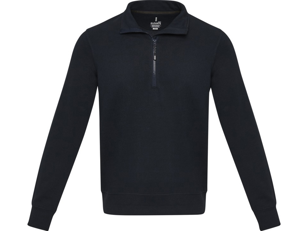 Tin унисекс-свитер с молнией на четверть из переработанных материалов Aware™ - Темно - синий купить оптом и в розницу с нанесением логотипа в Казани