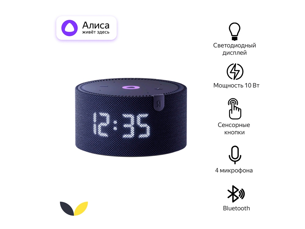 Звучит атмосферно. Вторая версия компактной колонки с Алисой — звук в три раза мощнее и лаконичный дизайн. Алиса станет чутким другом и будет с вами на одной волне — когда получше вас узнает. Подходит под разный интерьер. Соберите из двух одинаковых колонок Яндекса стереопару — и они будут играть музыку вместе, с объёмным звучанием. Подключайте к умному дому датчики и другие устройства — и управляйте ими голосом с помощью Станции. Алиса будет подбирать персональную музыку каждому, а ещё все смогут управлять умным домом в приложении. Характеристики: - светодиодный дисплей (показывает время, таймер и погоду); - 10 Ватт; - Bluetooth 5.0; - Wi-Fi 2.4 и 5 ГГц; - 4 микрофона; - сенсорные кнопки для управления музыкой.
