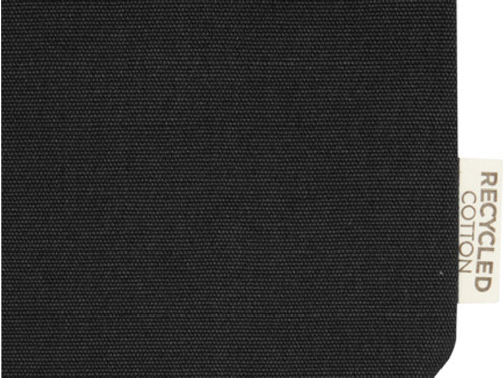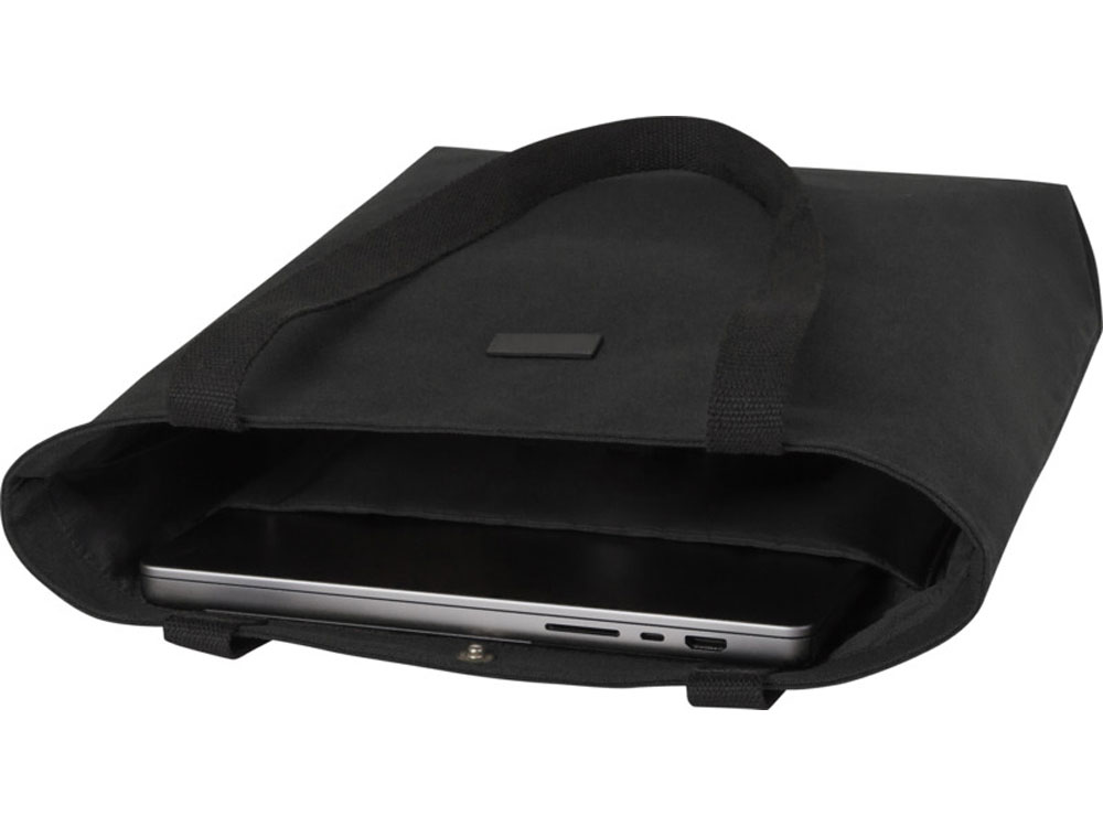Эко-сумка изготовлена из переработанного холста, сертифицированного по стандарту GRS, и имеет подкладку из переработанного ПЭТ-пластика, сертифицированного по стандарту GRS. Универсальная эко-сумка имеет мягкое отделение для ноутбука с диагональю 15 дюймов и два карманных рукава внутри для телефона, кошелька или аксессуаров, а также удобную застежку на кнопке для открытия и удобные плетеные ручки из хлопка. Декоративная металлическая пластина может придать логотипу сияние благодаря утонченному матовому покрытию.