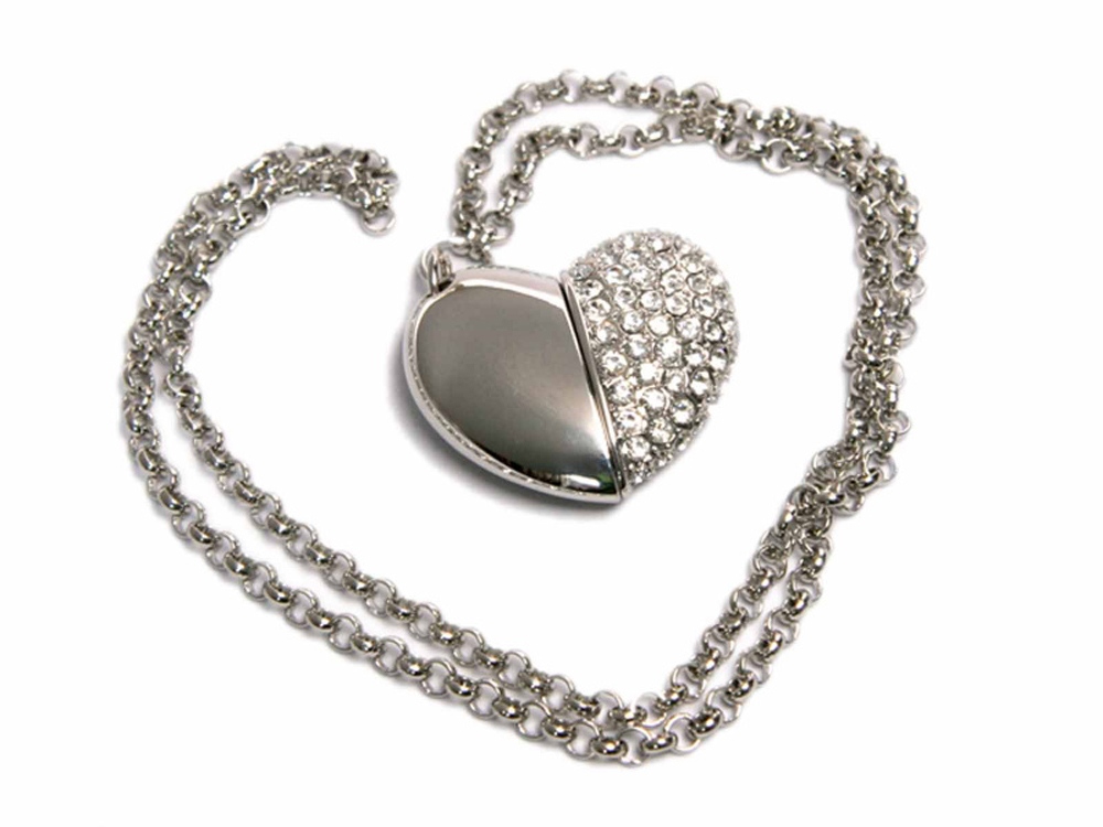 Флеш-накопитель в виде Сердца с кристаллами , объем памяти 32 Гб. Металлический корпус. Скорость чтения 15 Мб/с. Скорость записи 5 Мб/с.