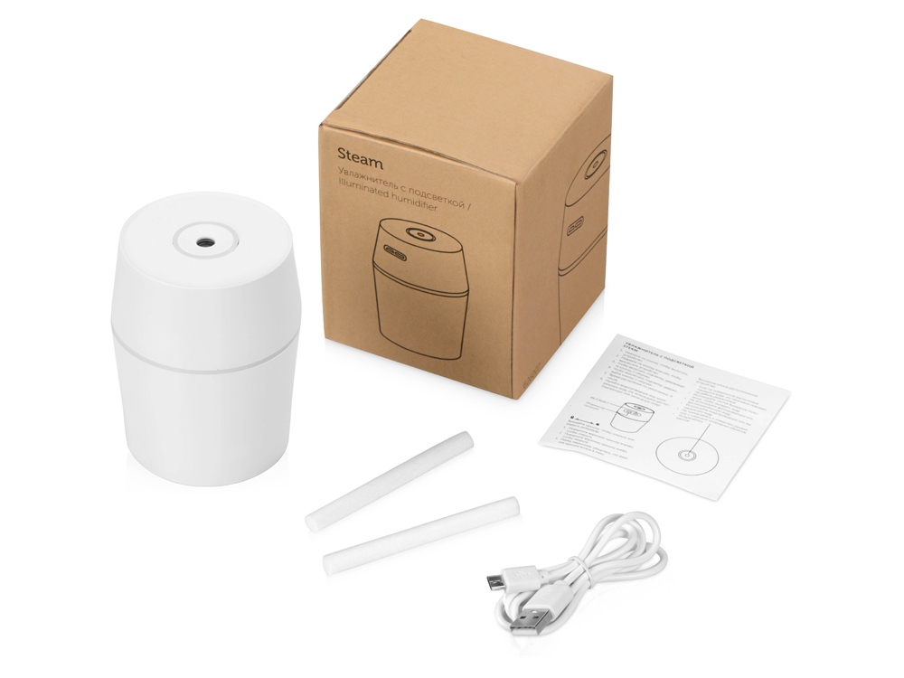USB Увлажнитель воздуха с голубой подсветкой Steam: • Мобильный и легкий, всего 85 гр • Мощность 1,5 Вт. • Емкость 200 мл. • Режим ночной подсветки. • Питание от USB-кабеля (идёт в комплекте). • Для использования в офисе, в машине или дома. • Инструкция в комплекте. • Упакован в крафтовую коробку. • Компактный и простой в использовании. • Область применения: 10 м². Не разрешается добавлять ароматические масла в увлажнитель.
