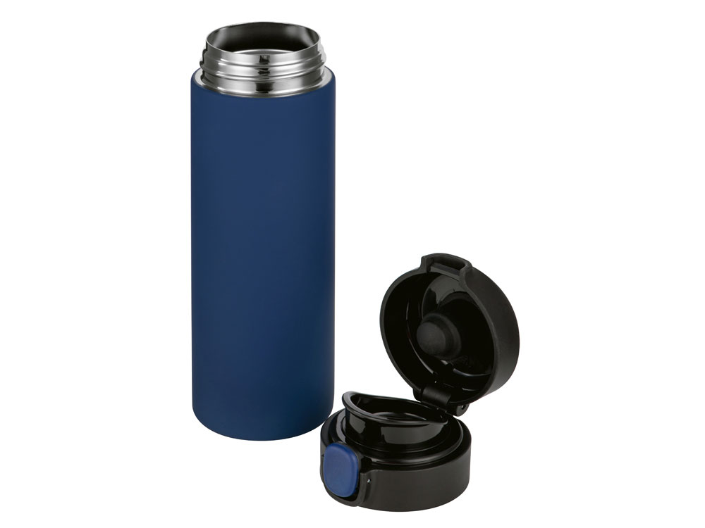 Вакуумная термокружка Waterline c кнопкой Guard, 400 мл, тубус, темно-синий