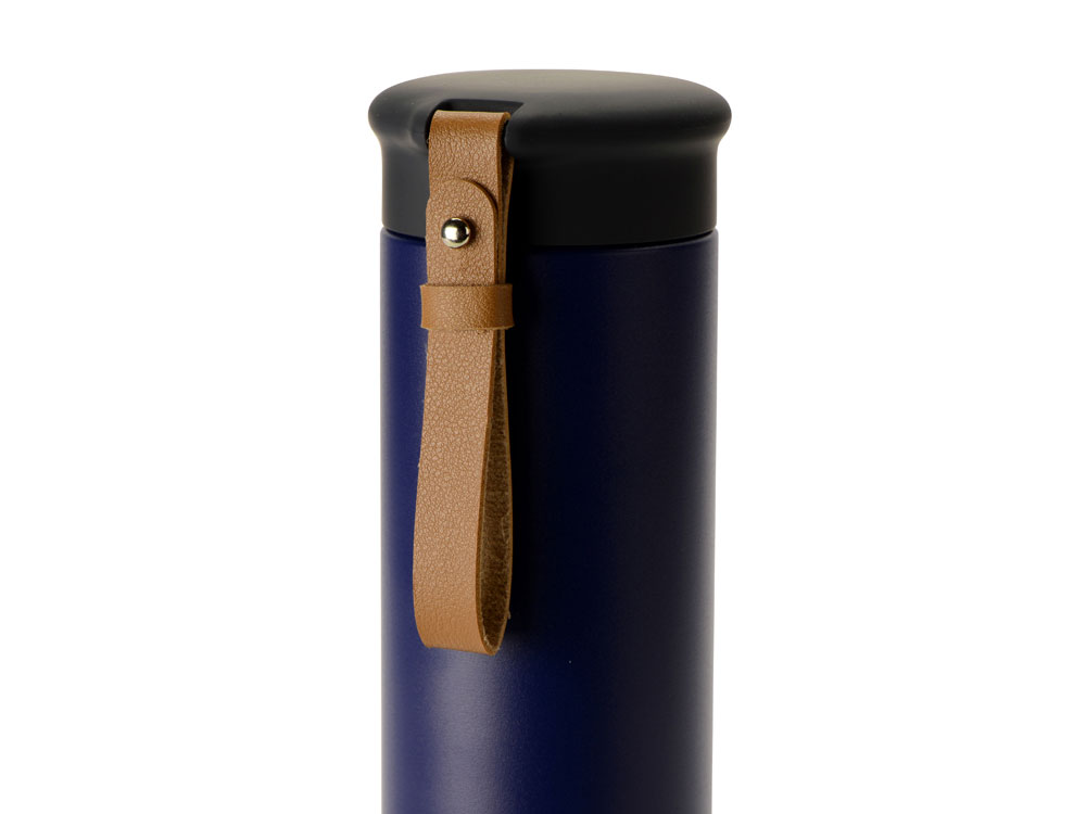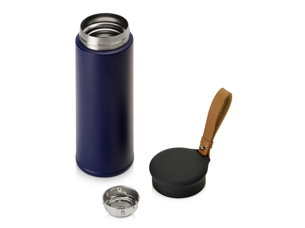 Engage — термос из долговечной нержавеющей стали с двойными стенками, вакуумная изоляция между которыми помогает сохранять температуру напитков в течение долгого времени. Термос идеально подходит для заваривания чая: специально для этого в комплекте идет металлическое ситечко с ручкой, которое не пропустит ни одной чаинки. Термос герметично завинчивается на крышку, оснащенную съемным ремешком из качественной ПУ кожи. Крышка имеет прорезиненное покрытие, что создает интересное сочетание текстур в рамках одной модели. Корпус имеет элегантную рельефную поверхность с антискользящим эффектом. - Удобный ремешок - Герметичная крышка soft-touch - Сохраняет тепло и холод до 18 часов - Пищевая долговечная сталь 304 марки - Оптимальный объем