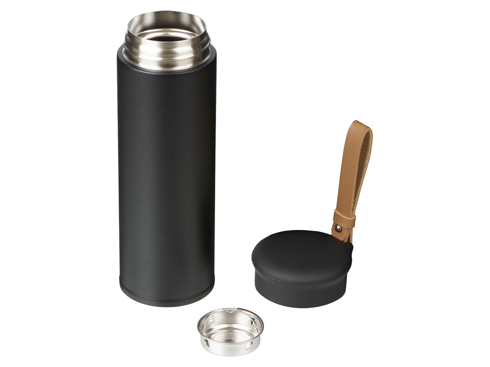 Engage — термос из долговечной нержавеющей стали с двойными стенками, вакуумная изоляция между которыми помогает сохранять температуру напитков в течение долгого времени. Термос идеально подходит для заваривания чая: специально для этого в комплекте идет металлическое ситечко с ручкой, которое не пропустит ни одной чаинки. Термос герметично завинчивается на крышку, оснащенную съемным ремешком из качественной ПУ кожи. Крышка имеет прорезиненное покрытие, что создает интересное сочетание текстур в рамках одной модели. Корпус имеет элегантную рельефную поверхность с антискользящим эффектом. - Удобный ремешок - Герметичная крышка soft-touch - Сохраняет тепло и холод до 18 часов - Пищевая долговечная сталь 304 марки - Оптимальный объем