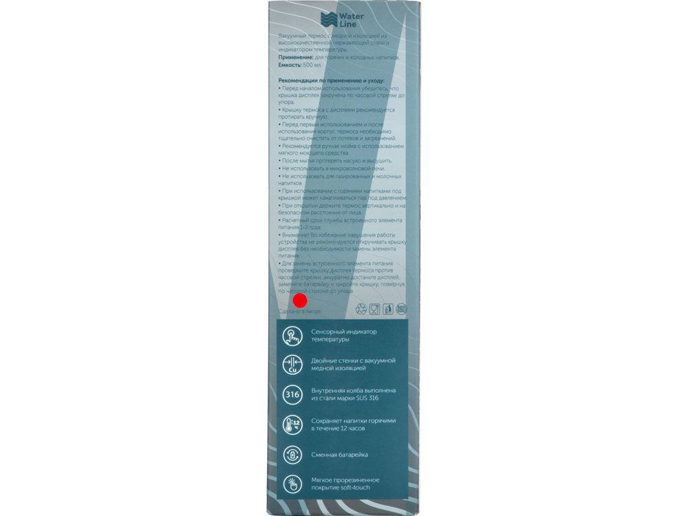 Вакуумный термос Module X не только сохраняет ваши напитки горячими, но и показывает, насколько они горячие! Уникальная особенность термоса — это сенсорный индикатор температуры, расположенный в крышке. Чтобы узнать температуру внутри термоса, достаточно прикоснуться к поверхности крышки. Батарейку CR2032 по истечении срока работы (1-2 года) можно заменить — для этого открутите верхнюю часть крышки против часовой стрелки и аккуратно поменяйте элемент питания. Внутренняя колба изготовлена из высококачественной стали марки SUS 316 с добавлением молибдена, что делает термос еще более устойчивым к коррозии*. Снаружи термос покрыт мягким прорезиненным покрытием soft touch, благодаря которому его приятно держать в руке. - Пищевая долговечная сталь марки SUS 316 - Двойные стенки с вакуумной медной изоляцией - Сенсорный индикатор температуры - Съемное ситечко - Покрытие soft-touch - Заменяемая батарея * по сравнению с аналогами из 304 стали.