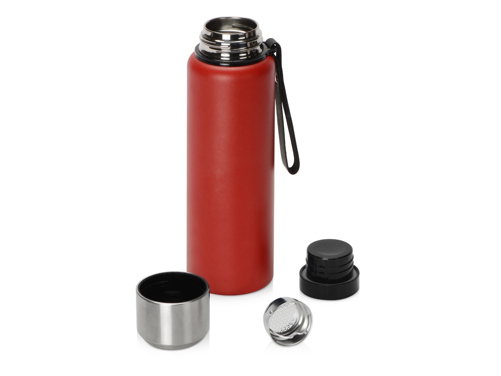 Вакуумный термос c двойными стенками из пищевой нержавеющей стали 304 марки для небольших путешествий и отдыха на природе. Надежно удерживает тепло и холод в течение 24 часов. Крышку можно использовать в качестве чашки. В комплекте имеется съемное ситечко из нержавеющей стали. Имеется прочный и удобный ремешок для переноски. Корпус покрыт специальной порошковой краской для надежного хвата и защиты от царапин. Объем 800 мл. - Удержание тепла и холода в течение 24 часов. - Удобный ремешок для переноски. - Матовое порошковое покрытие. - Двойные стенки из нержавеющей стали 304 (18/8). - Съемное ситечко. Номинальный объем термоса 800 мл, при использовании ситечка максимальный полезный объем составит 710 мл.