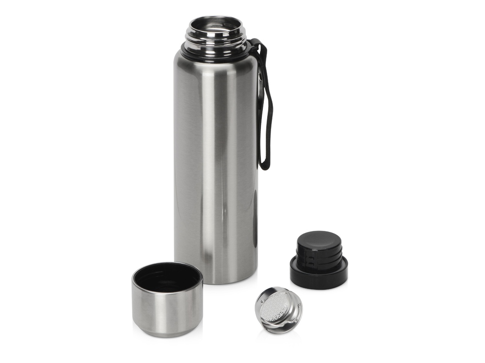 Вакуумный термос c двойными стенками из пищевой нержавеющей стали 304 марки для небольших путешествий и отдыха на природе. Надежно удерживает тепло и холод в течение 24 часов. Крышку можно использовать в качестве чашки. В комплекте имеется съемное ситечко из нержавеющей стали. Имеется прочный и удобный ремешок для переноски. Объем 800 мл. - Удержание тепла и холода в течение 24 часов. - Удобный ремешок для переноски. - Двойные стенки из нержавеющей стали 304 (18/8). - Съемное ситечко. Номинальный объем термоса 800 мл, при использовании ситечка максимальный полезный объем составит 710 мл.