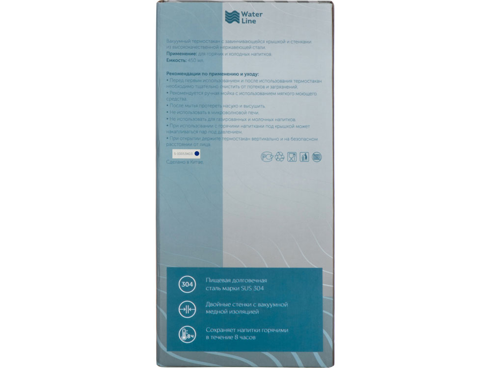 Герметичный термостакан с завинчивающейся крышкой. Двустенная конструкция из нержавеющей стали с вакуумной изоляцией. Сохраняет напитки горячими в течение 8 часов и холодными в течение 24 часов. Объем составляет 450 мл. - Пищевая долговечная сталь марки SUS 304 - Двойные стенки с вакуумной изоляцией - Сохраняет напитки горячими в течение 8 часов