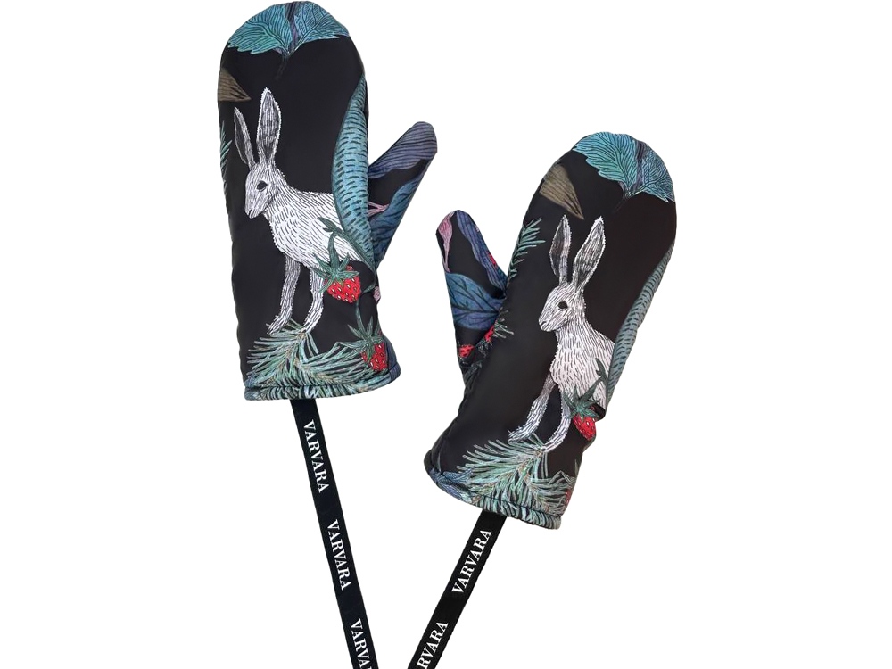 Утепленные варежки с принтом Зайцы. Верхняя ткань выполнена из непромокаемой курточной ткани, внутри флисовый подклад и утеплитель - холлофайбер. Температурный режим до -20 градусов. Варежки на ленте, как в детстве. Авторский принт написан художницей вручную специально для российского бренда Varvara. Художница размышляла на тему русской природы, культуры и искусства - тут и лесная земляника, и сочная зелень, и конечно, сказочные зайцы - как будто только что сошли с полотен В. Васнецова. Варежки упакованы в подарочный тубус. Бережный уход: - Ручная стирка при температуре не выше 30 градусов. - Сушка в горизонтальном положении. * фрагмент принта может отличаться от представленного на фото