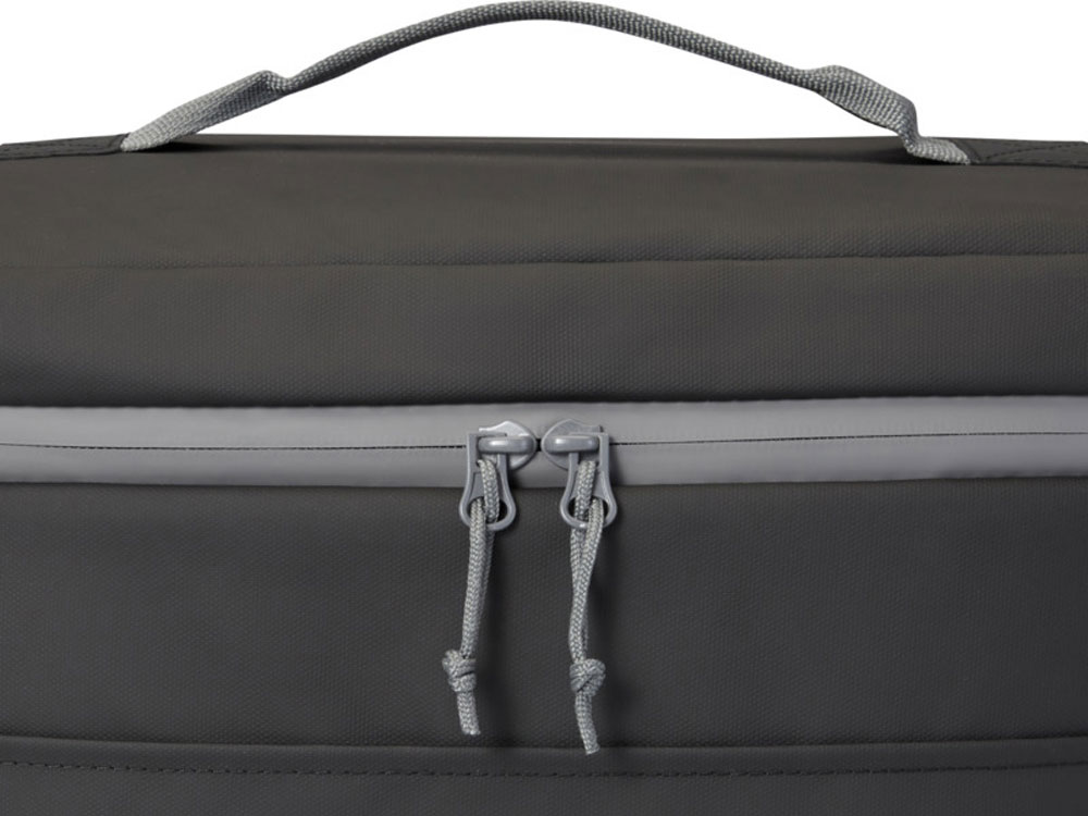 Водонепроницаемая сумка-холодильник на 20 банок, изготовленная из переработанных материалов, сертифицированных согласно стандарту GRS, включая молнии. Имеет просторное отделение на молнии с подкладкой из безопасного для пищевых продуктов и очень толстого теплового PEVA высокой плотности и пенной изоляцией, позволяющей хранить напитки и закуски холодными в течение нескольких часов. Также имеет 2 сетчатых кармана и один открытый передний карман как дополнительное место для хранения. Тканевая ручка для переноски и регулируемый плечевой ремень с мягкой подкладкой обеспечивают удобное ношение. Из переработанных материалов, сертифицированных по стандарту GRS, изготовлены основная ткань, подкладка, лямки и застежки-молнии. Емкость: 22 литра. Не содержит ПВХ.