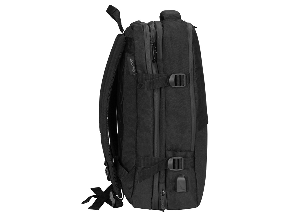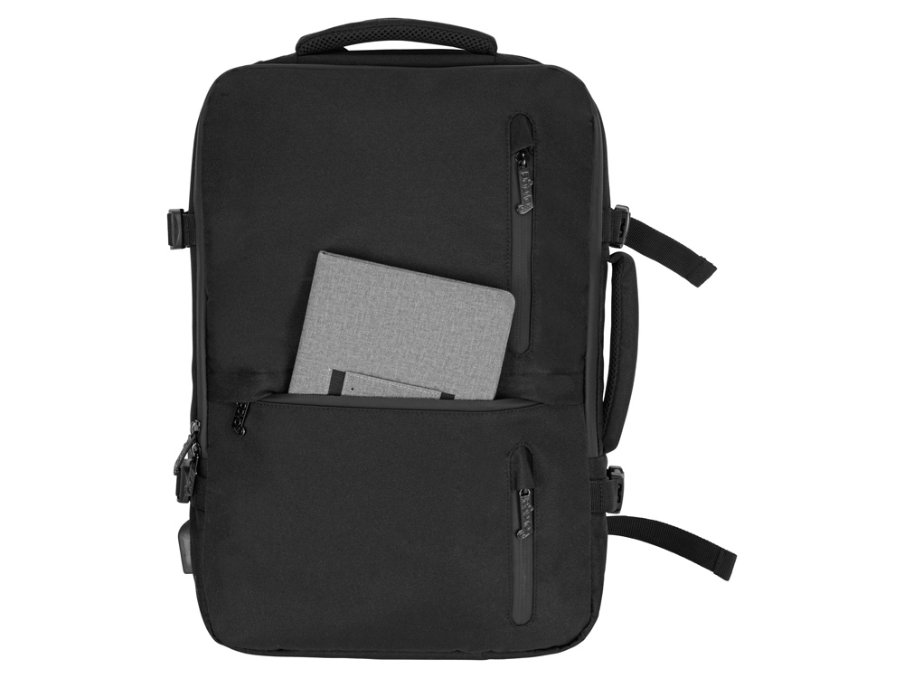 Идеальное решение для деловых поездок и путешествий в любую погоду - поместится все необходимое - от планшета и ноутбука до личных вещей и одежды. С рюкзаком можно ездить в любую погоду, потому что он изготовлен из водостойкого материала и снабжен водонепроницаемыми молниями. С помощью 4-х боковых фиксаторов вместительный рюкзак трансформируется в компактную сумку. Три вместительных отделения, включая: - Органайзер с 3-мя отделениями. - Отделение для одежды с сетчатой крышкой на молнии. - Отделение для планшета и ноутбука 15. Дополнительные характеристики: - 3 кармана на молниях снаружи на фронтальной стороне. - Внешний USB порт для зарядки устройств. - Ремень на спинке для надежного крепления на ручку чемодана. - Эргономичные лямки с регулировкой длины и фиксатором на груди. - Эргономичная спинка из EVA снижает нагрузку на спину. - Вместимость 35 л, максимальная нагрузка 20 кг. - Нетканый мешок для хранения в комплекте.