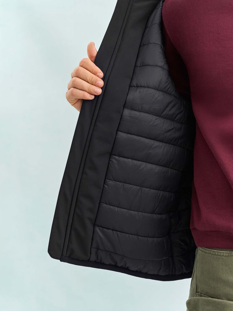 Материал верх - переработанный полиэстер, 94%; эластан 6%, плотность 270 г/м²; софтшелл; подкладка - нейлон 100%; утеплитель - переработанный полиэстер, 100%
