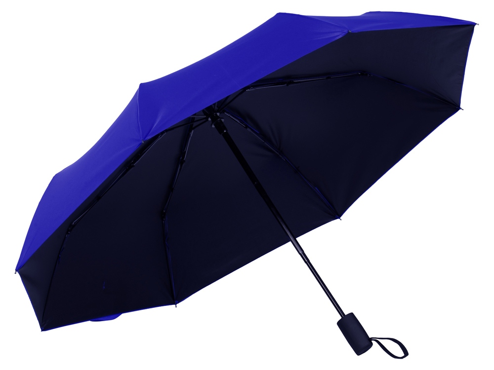 Особенностью этого зонта-автомата является двухцветный купол повышенной плотности и прочности. Под таким зонтом не страшен никакой дождь, даже с порывами ветра. На ремешок-застежку на липучке шириной 3 см можно нанести логотип. Эластичный шнурок на ручке служит для дополнительного удобства при хранении.