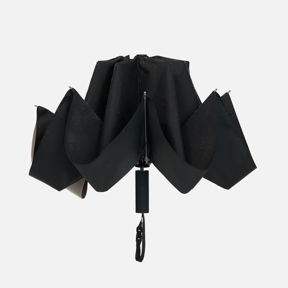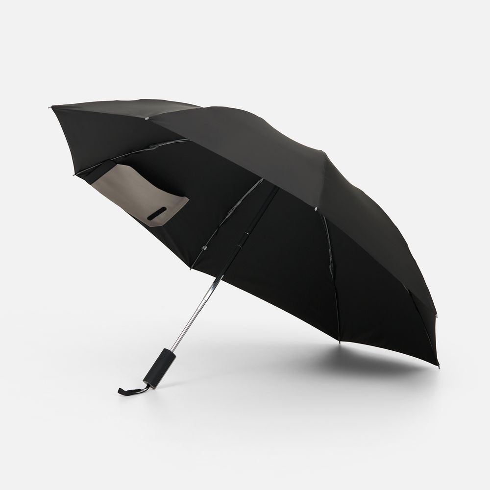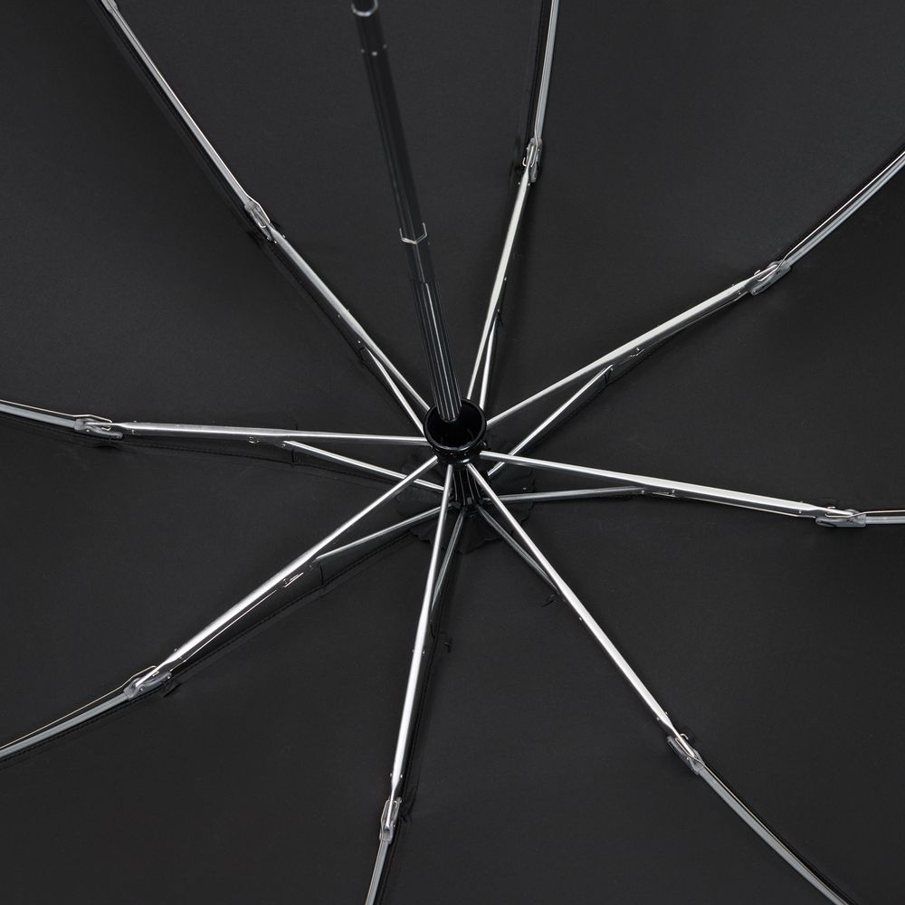 Складываясь после дождя, он прячет мокрую поверхность внутри, а сухая остается снаружи — в закрытом положении зонт не побеспокоит окружающих и не намочит одежду. Благодаря застежке на ремешке, зонт удобно подвесить, например, на рюкзак.
