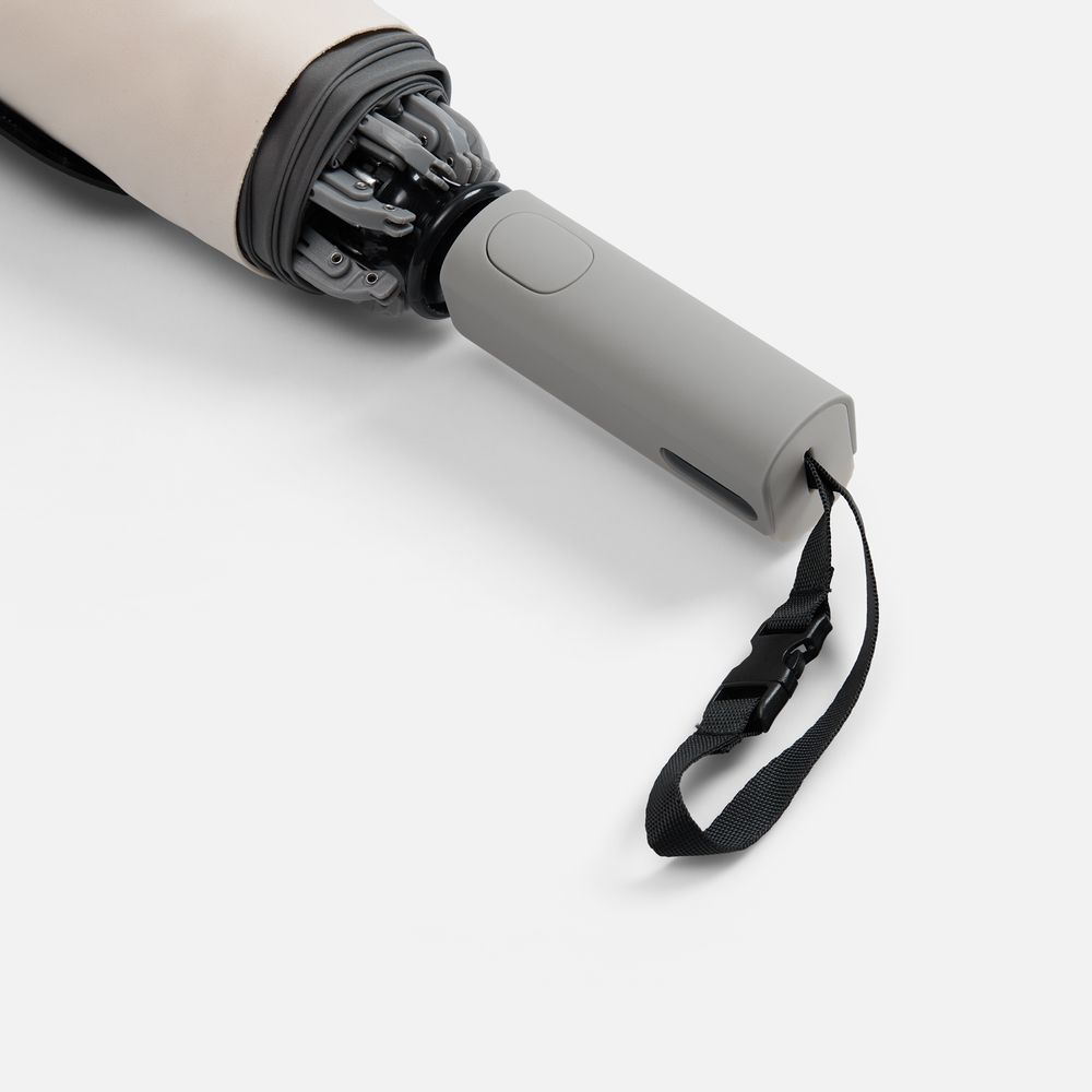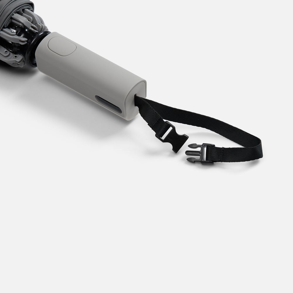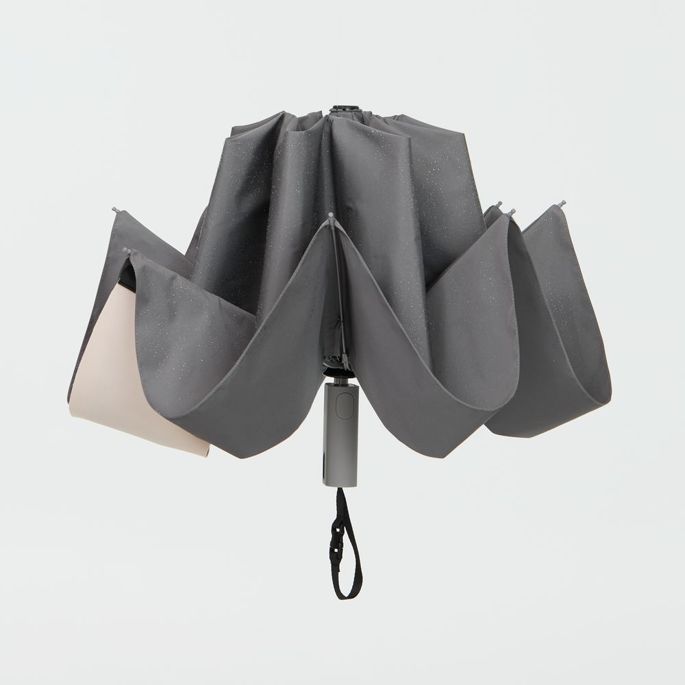 Складываясь после дождя, он прячет мокрую поверхность внутри, а сухая остается снаружи — в закрытом положении зонт не побеспокоит окружающих и не намочит одежду. Благодаря застежке на ремешке, зонт удобно подвесить, например, на рюкзак.