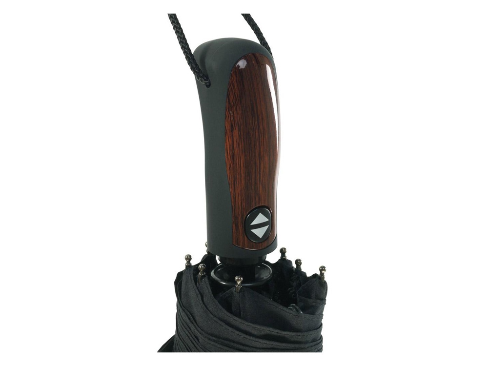 Удобный и элегантный зонт-автомат незаменим для дождливой погоды. Нано-покрытие купола для стойкости к промоканию и загрязнению. Каркас снабжен системой, защищающей от порывов ветра. На ручке стильная вставка под дерево. Подарочная коробка и чехол в комплекте.