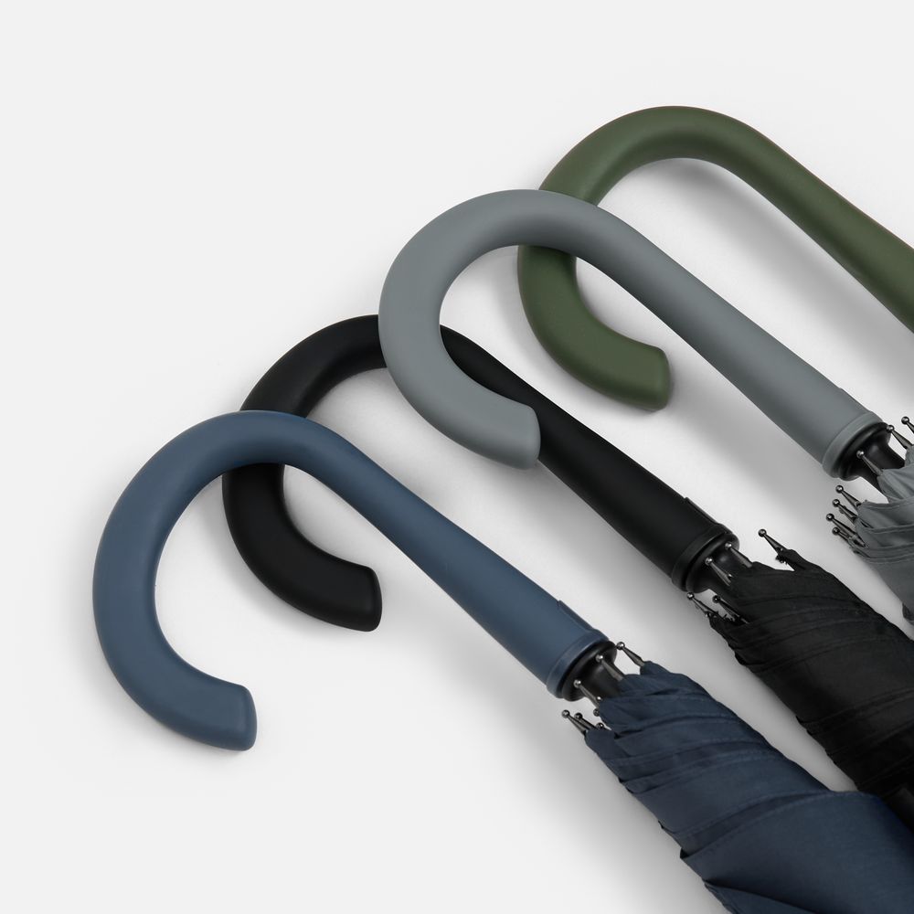 Современная модель зонта-трости с эргономичной ручкой, каркасом из стеклопластика и увеличенным размером купола.